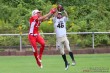 Devils nutzen ihre Chancen zu spät Gelsenkirchen Devils nutzen ihre Chancen erst in der zweiten Halbzeit und verloren das Spiel mit 20:30. Sah es im ersten Viertel noch aus wie ein Spiel auf Augenhöhe, wo Defense gegen Defense kämpft und keine der beiden Offenses nur einen Punkt zustande brachte, so änderte sich dieses schlagartig im zweiten Viertel. Die Dolphins nutzen ihre Chancen und holten sich ihre Punkte mit 2 Touchdowns plus Extrapunkte. Zu allem Überfluss bekam der Devils Quarterback kurz vor Ende der Halbzeit noch einen zu starken Hit ab und musste das Spielfeld verlassen. Die zweite Halbzeit übernahm Quarterback Johannes Werner und brachte recht schnell seinen Wurf an den Receiver - Touchdown! Auch der PAT war gut. Durch einen Interception kamen die Devils schnell wieder in Ballbesitz und der nächste Touchdown für die Gelsenkirchener saß. Doch die Paderborner schlugen zurück - Touchdown und Extrapunkt. Das vierte Viertel startete mit einem Field Goal über 40 Yards für die Dolphins. Und auch der nächste Touchdown erhöhte den Punktestand der Dolphins, doch eine 2-Point Conversion missglückte. Kämpferisch hielten die Devils dagegen, doch der letzte Touchdown kam zu spät. Auch der Versuch, noch 2 Punkte mehr daraus zu machen, scheiterte. Großartig haben sich die Teufel zurückgekämpft, doch die Zeit war zu knapp, um die Chancen zu nutzen. Viertelergebnisse: 0:0 / 0:14 / 14:7 / 6:9 Finale: 20:30 |