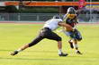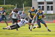 Auch ihr letztes reguläres Heimspiel gewinnen die Cardinals Mit einem 45:7 Sieg gegen die Cologne Falcons bleiben die Assindia Cardinals zu Hause ungeschlagen. Das erste Viertel sah mehr nach einem “Beschnuppern“ aus, denn die Falcons Defense hielt gut Stand. Die ersten Punkte kamen, wie im Spiel gegen Bielefeld, durch ein Field Goal zustande. Mit einem Touchdown für die Men in Blue endete das Viertel. Mit dem Start des zweiten Viertels kamen nun endlich die Punkte auf die Anzeigetafel - Field Goals, Safety, Touchdowns. Spektakulär war der Touchdown der Kölner. Sah es in dem einen Moment noch so aus, als würde die Essener Verteidigung den Falcons Quarterback in der Endzone zu Fall bringen, der wurde schnell eines besseren belehrt. Auf den letzten Drücker wurde der Ball an den Widereceiver abgegeben, der den Ball über das ganze Feld in die Endzone der Cardinals brachte. So ging man mit 24:7 in die Halbzeitpause. Im dritten Viertel kamen die Essener Backups zum Einsatz. Mit den vielen Strafen kamen die Essener nicht weit und das Quarter endete mit 0:0. Erst wieder im dritten Viertel machte man sich dran, Punkte auf das Scoreboard zu bekommen. Drei Toundowns, inklusive Zusatzpunkte, reichten für das Endergebnis von 45:7. Jetzt gilt es, am 21. September das erste Relegationsspiel zu gewinnen! Viertelergebnisse: 9:0 / 15:7 / 0:0 / 21:0 Finale: 45:7 |