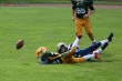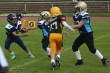 U10 Scrimmage in Willich zwischen den Schiefbahn Riders und den Cologne Crocodiles Zum einem Minicamp mit anschließendem Testspiel luden die Schiefbahn Riders die Cologne Crocodiles ein. Während des Camps wurden die beiden Teams in eine komplette Offense, sowie eine Defense Mannschaft aufgeteilt, bevor es zu der eigentlichen Scrimmage kam. Die Riders sorgten für ein tolles Ambiente. Obwohl es sich nur um ein Testspiel handelte, kam man sich vor, als wäre man bei einem richtigen Spiel. Musik, Popcorn, Bratwürste, kleine, aber willensstarke Footballer und natürlich Cheerleader - kurz um, alles was man für ein Footballspiel braucht. Für die meisten U10 Riders war es das allererste Spiel, während die Crocodiles auf viele Spieler mit Erfahrung zurückgreifen konnten. Aber es geht ja darum, dass jeder etwas lernt und natürlich um den Spaß. Die erste Halbzeit war für die Riders ein wirklicher Härtetest. Direkt im ersten Drive rannte der Kölner Quarterback zu einem Touchdown. Hier zeigte sich schon viel Erfahrung, aber die Riders lernten daraus. So ging die erste Halbzeit mit 4 Touchdown zu Null dem Ende entgegen. In der Pause zeigten dann die Riders Youth Hot Spurs Cheerleader, die auch ihren allerersten Auftritt hatten, ihr Können, bevor es zu der zweiten Spielhälfte kam. Und in der kamen die kleinen Riders zu wenigsten zwei Touchdowns. Bei einem Punktestand von 12:48, der ja nicht wirklich zählt, beendete der Referee das Spiel. Fair klatschen sich die Spieler ab - mit den Ellbogen selbstverständlich - und die Zuschauer feierten die kleinen Helden. |