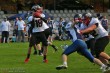 Stadtderby der GFL Juniors in Düsseldorf zum Zweiten Die TFG Typhoons im entscheidenden Spiel gegen die Panther Bestes Herbstwetter in Düsseldorf - die Sonne lachte über dem Rather Waldstadion, wo sich die beiden Düsseldorfer Kontrahenten zum direkten Vergleich trafen. Bei dem Hinspiel mussten sich die Typhoons mit einem 8:6 Sieg der Panther geschlagen geben. Schon im ersten Viertel zeigte die Typhoons Defense, was sie konnte und ließ den Gegner nicht in die Nähe ihrer Endzone kommen. Kurz vor Ende des Viertels gelang dem Typhoons Quarterback ein schöner Pass auf seinen Receiver F. Wieding (#81), der diesen zum ersten Touchdown des Spiels umsetzte. Auch der Point after Touchdown wurde erfolgreich umgesetzt. Im zweiten und dritten Viertel waren es beide Defense Mannschaften, die es der jeweiligen Offense schwer machten, einen Punkt zu erzielen. Die Typhoons Defense drängte die Panther Offense sogar noch in deren Redzone und schafften durch einen missglückten Snap einen Safety. Mit 9:0 ging es in das letzte Viertel und die Sterne standen für die Typhoons gut, nicht nur das Spiel, sondern auch die Stadtmeisterschaft für sich zu entscheiden. Doch es kommt immer anders als man denkt. Mit einem langen Pass des Panther Quarterback gelang den Raubkatzen der erste Touchdown, sowie auch der Extrapunkt. Nach Abpfiff ging der Sieg mit 9:7 Punkten zwar an die Mannschaft des Theodor-Fliedner-Gymnasiums, doch für den direkten Vergleich fehlte ihnen bei diesem Spiel nur ein Punkt. Viertelergebnisse: 7:0 / 0:0 / 2:0 / 0:7 Endstand: 9:7 |