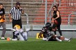 Cologne Crocodiles liefern einen Krimi und kommen in die Play-Offs Einen spannenden Krimi lieferten die Cologne Crocodiles gegen die Berlin Rebels vor rund 1200 Zuschauern im Sportpark Höhenberg. Touchdown schon in den ersten Minuten für die Kölner durch Jarvis McClam. Das Stadion tobte und die Crocodiles bauten ihre Führung auf 17 Zähler auf dem Scoreboard aus. Zwei Sekunden vor dem Halbzeitpfiff kamen die Rebels dann auch in der Endzone der Kölner an. Mit 17:7 ging es in die Pause. Eine schöne Defense Leistung beider Teams gab es im dritten Viertel, dass die Berliner mit einem Touchdown abschlossen. Im Schlussviertel wurde es dann richtig spannend. Nach gut vier Minuten machten die Rebels ihre nächsten sechs Punkte und übernahmen erstmals die Führung. Mit einem gutem 40 Yard Pass in die Endzone der Berliner holten sich die Crocodiles die Führung zurück. So schnell gaben die Berliner aber nicht auf. Touchdown Berlin und noch anderthalb Minuten auf der Uhr. Der darauffolgende Kick-Off der Rebels landete direkt in den Armen von Wide Receiver Aaron Jackson #4 , der das Spielgerät mit einem Wahnsinnslauf zum Touchdown in die Berliner Endzone brachte. Jetzt waren wieder die Berliner am Drücker, doch die Crocodiles Defense wuchs über sich hinaus und selbst der letzte Hail Mary Pass von Berlins QB Donovan Isom wurde abgefangen. Der Jubel auf Kölner Seite war riesig. In 14 Tagen geht es zum Play-Off Spiel gegen die Munich Cowboys. Viertelergebnisse: 14:0 / 3:7 / 0:7 / 14:13 Endstand: 31:27 |