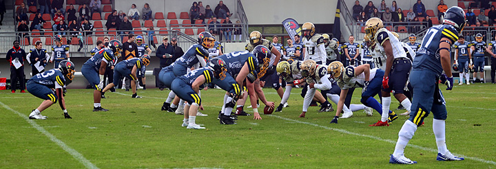 Assindia Cardinals laden Mainz Golden Eagles zum Vorbereitungsspiel nach Essen ein Auch in Essen möchte man vor der regulären Saison seine Einheiten testen. So fragte man in Mainz nach und die Golden Eagles sagten der Einladung zu. Gut 120 Zuschauer fanden den Weg bei halbwegs gutem Wetter ins Essener Stadion "Am Hallo". Das Ergebnis von 14:23 ist hierbei nicht von Wert, da es darum geht, die Spieler zu testen und Schwachstellen zu finden. Und die wurden auf beiden Seiten gefunden. Cardinals Head Coach Bernd Janzen glaubt aber fest an sein Team und will bis zum ersten regulären Spiel am 30.4. gegen die Wuppertal Greyhounds die Fehler ausmerzen. Unschön war bei diesem Vorbereitungsspiel der Einsatz zweier Rettungsfahrzeuge. Ein Essener Spieler zog sich dabei einem schweren Bruch im Oberschenkel zu, bei dem Mainzer Spieler war bis zum Ende des Gameday die Verletzung noch nicht ganz klar, vermutlich wurde aber das Knie in Mitleidenschaft gezogen. Beiden Spielern wünschen wir eine gute Genesung. Viertelergebnisse: 0:0 / 7:6 / 0:14 / 7:3 Endstand: 14:23 |