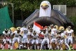 Herzschlagfinale beim Junior Bowl XLI Düsseldorf Panther holen sich in den letzten Minuten den Sieg Text: M.Erdelen-Peppler / A.Steinberg Die Düsseldorf Panther haben ihren Titel in einem Herzschlagfinale erneut verteidigt und gewinnen das Endspiel der GFL Juniors mit 30:26. Der Junior Bowl: in seiner 41. Auflage standen sich, wie im Vorjahr auch schon, die Düsseldorf Panther und Berlin Adler gegenüber. Für die Adler war es die achte Teilnahme an einem Junior Bowl (6 Siege, 2 Niederlagen), für die Panther mittlerweile schon die 22. (17 Siege, 5 Niederlagen). Nachdem das Endspiel im letzten Jahr aus Sicht der Adler mit einer 23:6 Niederlage endete, stand in diesem Jahr ein sehr gut vorbereitetes Team aus Berlin den Panthern gegenüber. Bereits den erste Kick Off Return des Spiels konnten die Adler bis auf 4 Yards an die Goalline tragen. Nach nur knapp zwei Minuten gingen sie mit einem Touchdown plus einem guten PAT in Führung. Eine Interception der Panther brachte die Adler schnell wieder in den Ballbesitz, den sie in einen weiteren Touchdown umsetzen konnten. Allerdings misslang der Zusatzpunkt. Nach dem folgenden Kick Off der Adler rannten die Panther direkt in die gegnerische Endzone - Touchdown und guter PAT. Mit weiteren sieben Punkte für Berlin endete das erste Quarter mit 7:20. Im zweiten Quarter arbeiteten die Defense Teams der Adler und Panther sehr gut. Erst bei verbleibenden zwei Minuten auf der Uhr konnten die Berliner ihren Punktestand um sechs Zähler erhöhen. Der beginnende Regen schien die Panther förmlich zu motivieren, denn mit exakt null Minuten und null Sekunden auf der Uhr landeten die Panther ihren zweiten Touchdown. Auch der Point after Touchdown war gut. Mit einem Spielstand von 14:26 ging es in die Halbzeitpause. Wegen eines kurzen Gewitters musste die Pause etwas verlängert werden. Als das Gewitter vorübergezogen war, und es damit auch aufhörte zu regnen, ging es für die Teams in das dritte Quarter. Wieder sahen die Zuschauer im sehr gut gefüllten Benrather Stadion ein Defense Spektakel, das mit 7:0 für die Panther endete. Auch das finale Quarter gehörte den Düsseldorfern. Mit einem Field Goal verkürzten die Panther den Punktestand auf 24:26. Jetzt waren die Adler wieder am Zug, schafften es aber nicht in die Reichweite der Panther-Endzone zu kommen. Daher entschieden sie sich im vierten Versuch für einen Punt, mit dem der Ball auf die Zwei-Yard-Line befördert. Die Panther eroberten sich Yard für Yard zurück, bis sie in Field Goal Reichweite waren. Nur noch Sekunden auf der Uhr. Doch anstatt ein Field Goal zu versuchen, legten sie alles in die Waagschale. Dieser Versuch wurde nach einem Lauf von Marvellous Imade mit sechs Punkten belohnt - Touchdown! Allerdings wurde eine Two Point-Conversion von den Berlinern vereitelt. Die verbleibenden 24 Sekunden arbeitete die Panther Defense sehr gut gegen Berlin und ließ keine weiteren Punkte zu. Sieg für Düsseldorf! Herzlichen Glückwunsch an die Panther und allen verletzten Spielern wünschen wir eine baldige Genesung. Viertelergebnisse: 7:20 / 7:6 / 7:0 / 9:0 Endstand: 30:26 |