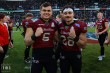 Rhein Fire ist Champion der European League of Football Das Team um Headcoach Jim Tomsula bleibt auch im Finale gegen Stuttgart Surge ungeschlagen. Mit einem Endergebnis von 53:34 gewann Rhein Fire am Sonntag das Finalspiel der ELF in Duisburg. Mit 31.500 verkauften Karten war das Finale in der Duisburger Schauinsland Arena ausverkauft. Stuttgart Surge war ein ernstzunehmender Gegner für Rhein Fire, denn sie haben die bis dato ungeschlagenen Vienna Vikings aus den Play Offs geworfen. Diese Stärke zeigte Stuttgart bereits im ersten Drive. Yard für Yard kämpften sie sich ran und wurden mit dem ersten Touchdown belohnt. Wide Receiver Louis Geyer #7 fing den Ball in der Endzone, der Extrapunktversuch war nicht gut. Spielstand 0:6. Zunächst wusste Fire darauf nicht wirklich zu antworten und wirkte ein wenig schwankend. Doch das hielt nicht lange an. Nathaniel Robitaille #86 holte den ersten Touchdown für Rhein Fire und Kicker Sebastian van Santen #33 holte den PAT. Mit diesem 7:6 ging es ins zweite Quarter. Nach der kurzen Pause ging Rhein Fire mit zwei weiteren Touchdowns durch Harlan Kwofie #10 und Florian Eichhorn #87, sowie zwei guten PAT durch van Santen weiter in Führung zum 21:6. Jetzt antwortete Stuttgart mit einem Touchdown durch Kai Hunter #2 und bekam wieder Aufwind. Nach einem langen Pass von Surge Quarterback Reilly Hennessey #4 auf Wide Receiver Darrel Stewart #8 startete Stuttgart mit dem ersten Versuch an der 20 Yard Line auf Seiten Rhein Fires. Drei Versuche gingen ins Leere, doch im ausgespielten vierten Versuch waren sie erfolgreich mit einem Pass auf Paul Steigerwald #18 und einer erfolgreichen Two-Point-Conversion. Rhein Fire antwortete kurz vor Ende der ersten Hälfte mit einem Field Goal durch van Santen. Zur Pause stand es 24:20. Nach der Pause holte Fire sofort die nächsten Punkte durch einen Run von Sergej Kandus #6 in die Endzone. Dieses Mal war der Extrapunkt-Versuch nicht erfolgreich. Nun stand es 30:20. Fire ging danach weiter in Führung mit einem Field Goal durch van Santen zum 33:20. Nun war Stuttgart wieder an der Reihe und holte mit einem Touchdown durch Darrel Stewart #8 auf. Auch die Two-Pint-Conversion war gut. Mit einem Spielstand von 33:28 ging es ins letzte Quarter. Fire ging mit zwei Touchdowns durch Harlan Kwofie und Glen Toonga #17 weiter in Führung zum 46:28. Stuttgart konnte sich noch einmal durch einen Touchdown von Stewart herantasten, doch kamen sie danach nicht weiter voran. In der letzten Spielminute besiegelte Rhein Fire das Endergebnis durch einen Touchdown von Nathaniel Robitaille und einem guten PAT durch van Santen zum 53:34. Es war ein spannendes Endspiel in der ELF mit zwei würdigen Gegnern. Die Liga hat sich mit diesem hoch qualitativen Spiel sehr gut verkauft und dürfte neue Zuschauer angelockt haben. Jetzt geht es in die lange, aber verdiente, Winterpause. Viertelergebnisse: 7:6 / 17:14/ 9:8 / 19:6 Endstand: 42:23 |