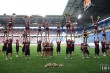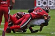 Touchdown-Festival bei Rhein Fire Centurions waren Fire stark unterlegen [von Corinna von Eicken] Perfektes Football-Wetter in Duisburg über der Schauinsland-Reisen-Arena. Rhein Fire trat zum zweiten Heimspiel an, obwohl es für die Fans wie das erste Heimspiel war, da das erste Spiel bekanntlicherweise in Oberhausen ausgetragen werden musste. Wieder zur alten Form aufgelaufen gewann Rhein Fire das "erste" Heimspiel-Derby vor 13097 Zuschauern gegen die Cologne Centurions mit 62:9. Für Köln lief bereits zu Beginn des Spiels nichts rund. Fire konnte so gut wie in jeden Drive einen Touchdown erzielen. Zudem hatte Köln auch noch mit Verletzungspech zum kämpfen (alles Gute den verletzten Spielern an dieser Stelleaus der Redaktion). Am Ende stach vor allem Glen Toonga hervor, welcher die meisten Punkte für Rhein Fire erzielte. Viertelergebnisse: 13:0 / 14:3 / 21:6 / 14:0 Endstand: 62:9 |