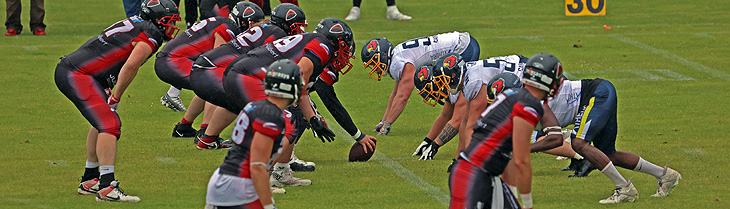 Herzschlagfinale im Regen: Assindia Cardinals unterliegen den Solingen Paladins mit 21:22 Es war ein Spiel, das an Spannung kaum zu überbieten war - und das Wetter spielte mit dramatischer Konsequenz seine eigene Rolle. Im Regen lieferten sich die Assindia Cardinals und die Solingen Paladins ein packendes Duell in der Regionalliga, das erst in den allerletzten Sekunden entschieden wurde. Beide Teams mussten mit zahlreichen verletzungsbedingten Ausfällen kämpfen, was die Kräfteverhältnisse auf dem Feld nahezu ausglich. Doch davon ließ sich niemand entmutigen - im Gegenteil: Die Zuschauer wurden mit einem intensiven und emotionalen Spiel belohnt. Starker Start, zäher Kampf Die Cardinals eröffneten das Spiel mit einem kraftvollen Touchdown und gingen in Führung. Doch die Paladins antworteten kurz vor Ende des ersten Viertel mit dem Ausgleich. Im zweiten Viertel übernahmen die Gäste aus Solingen das Kommando und bauten ihre Führung mit zehn Punkten auf 6:16 aus - ein Rückstand, mit dem es für Essen in die Halbzeitpause ging. Comeback mit Herz Nach der Pause zeigten die Cardinals Kampfgeist und verkürzten im dritten Viertel den Rückstand deutlich. Während Solingen nur sechs Punkte nachlegte, kämpfte sich Essen mit einem beherzten Auftritt zurück ins Spiel. Das vierte Viertel war geprägt von starker Defense auf beiden Seiten - keine der Mannschaften konnte weitere Punkte erzielen. Drama in den letzten Sekunden Mit nur noch zwei Sekunden auf der Uhr bot sich den Cardinals die große Chance: Ein Field Goal hätte den knappen Sieg bedeutet. Doch die Paladins blockten den Versuch und sicherten sich damit den hauchdünnen 22:21-Auswärtssieg. Fazit Ein Spiel, das trotz Dauerregens für Gänsehaut sorgte. Die Assindia Cardinals zeigten Herz, Leidenschaft und Teamgeist - und mussten sich am Ende doch denkbar knapp geschlagen geben. Doch eines ist sicher: Mit dieser Leistung ist in den kommenden Spielen noch einiges zu erwarten. Viertelergebnisse: 0:0 / 6:0 / 6:20 / 0:44 Endstand: 12:64 |