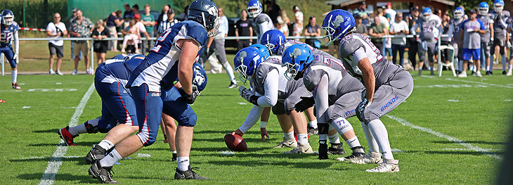 Bocholt Rhinos bezwingen den Tabellenführer in intensivem Heimspiel Münsterland gegen Ruhrgebiet - ein Duell mit Spannungsgarantie in der Landesliga NRW. Bei bestem Footballwetter empfingen die Bocholt Rhinos die bislang ungeschlagenen Recklinghausen Chargers. Die Gäste reisten mit einem stark dezimierten Kader an, geplagt von Verletzungen und Krankheitsausfällen, was sich im Spielverlauf bemerkbar machte. Die Anfangsphase gestaltete sich ausgeglichen. Beide Teams tasteten sich heran, suchten nach Lücken und verteidigten mit Nachdruck. Erst Mitte des ersten Viertels gelang den Rhinos der Durchbruch: Nach einem konzentrierten Drive erzielten sie den ersten Touchdown des Tages, gefolgt von einem erfolgreichen Extrapunkt. Damit gingen die Gastgeber mit 7:0 in Führung und setzten ein erstes Zeichen gegen den Favoriten aus Recklinghausen. Die rund 150 Zuschauer sahen ein Spiel auf Augenhöhe, geprägt von intensiven Zweikämpfen und taktischer Disziplin. Die Chargers antworteten mit einem eigenen Touchdown, verpassten jedoch den Extrapunkt. Zur Halbzeit stand es 10:6 - ein Zwischenstand, der die Spannung für die zweite Hälfte nur noch steigerte. Auch nach der Halbzeitpause blieb das Spiel hart umkämpft. Beide Mannschaften zeigten Einsatz und Leidenschaft, doch die Rhinos wirkten einen Tick entschlossener. Ein weiterer Touchdown brachte Bocholt in eine komfortablere Position, doch Recklinghausen gab sich nicht geschlagen. Kurz vor Schluss hatten die Gäste noch einmal die Chance auf den Ausgleich, doch die Bocholter Defense hielt stand - aufmerksam, geschlossen und mit dem nötigen Biss. Am Ende stand ein verdienter 20:12-Erfolg für die Rhinos, die damit nicht nur den Tabellenführer bezwangen, sondern auch ein klares Signal in Richtung Ligaspitze sendeten. Ein Spiel, das zeigte, wie viel Herzblut und Kampfgeist in der Landesliga steckt. Viertelergebnisse: 7:0 / 3:6 / 10:0 / 0:6 Endstand: 20:12 |